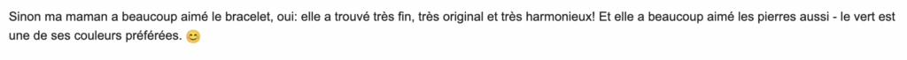 Oui, car tu ne paies pas juste un bijou, tu paies une pièce unique, faite main, durable et personnalisable. La création d’une pièce me prend généralement plusieurs heures et il faut compter également toutes mes charges. C’est une autre expérience que d’acheter un accessoire standardisé sur un site de fast-fashion.